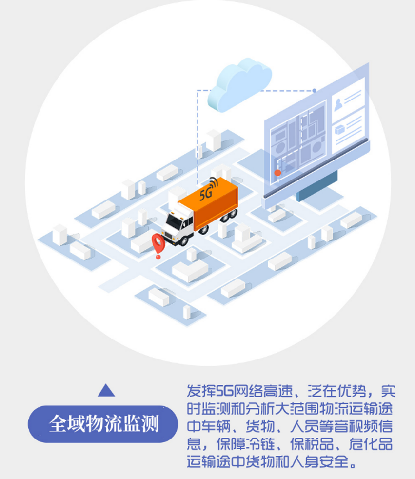 綜合利用5G、大數(shù)據(jù)、邊緣計(jì)算、人工智能等技術(shù),通過(guò)工業(yè)運(yùn)輸裝備上的智能監(jiān)控終端,實(shí)時(shí)采集全域運(yùn)輸途中的運(yùn)輸裝備、貨物、人員等的圖像和視頻數(shù)據(jù),并通過(guò)5G網(wǎng)絡(luò)傳輸至云平臺(tái)。云平臺(tái)對(duì)運(yùn)輸裝備進(jìn)行實(shí)時(shí)定位和軌跡回放,對(duì)貨物、人員進(jìn)行實(shí)時(shí)監(jiān)測(cè),實(shí)現(xiàn)工業(yè)運(yùn)輸?shù)娜^(guò)程監(jiān)控,能夠避免疲勞駕駛、危險(xiǎn)駕駛等行為,有效保障冷鏈物流、保稅品運(yùn)輸、危化品運(yùn)輸?shù)冗^(guò)程中運(yùn)輸裝備、貨物和人身安全。