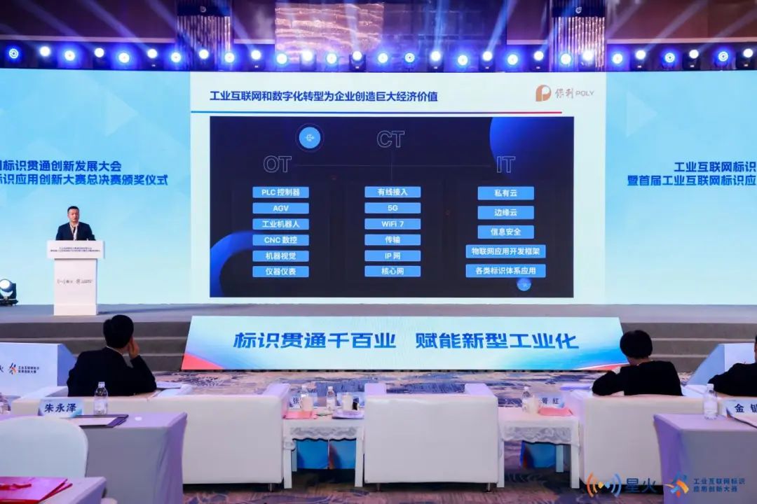 最后,在獲獎團隊項目分享環節,江蘇中天互聯科技有限公司總經理時宗勝,上海至數企業發展有限公司CEO邱濤,蘇州協同創新智能制造科技有限公司總經理袁雪騰三位獲獎企業代表分別以《基于標識解析的企業節點集成創新應用》、《基于工業互聯網主動標識的醫療設備智慧管理平臺》、《基于主動標識載體的標識創新應用》為主題帶來項目分享,分享了他們在工業互聯網標識解析體系建設中的創新實踐和成功案例,為推動工業互聯網標識的廣泛應用提供了寶貴的借鑒和參考,為產業數字化轉型和高質量發展注入新的動力。