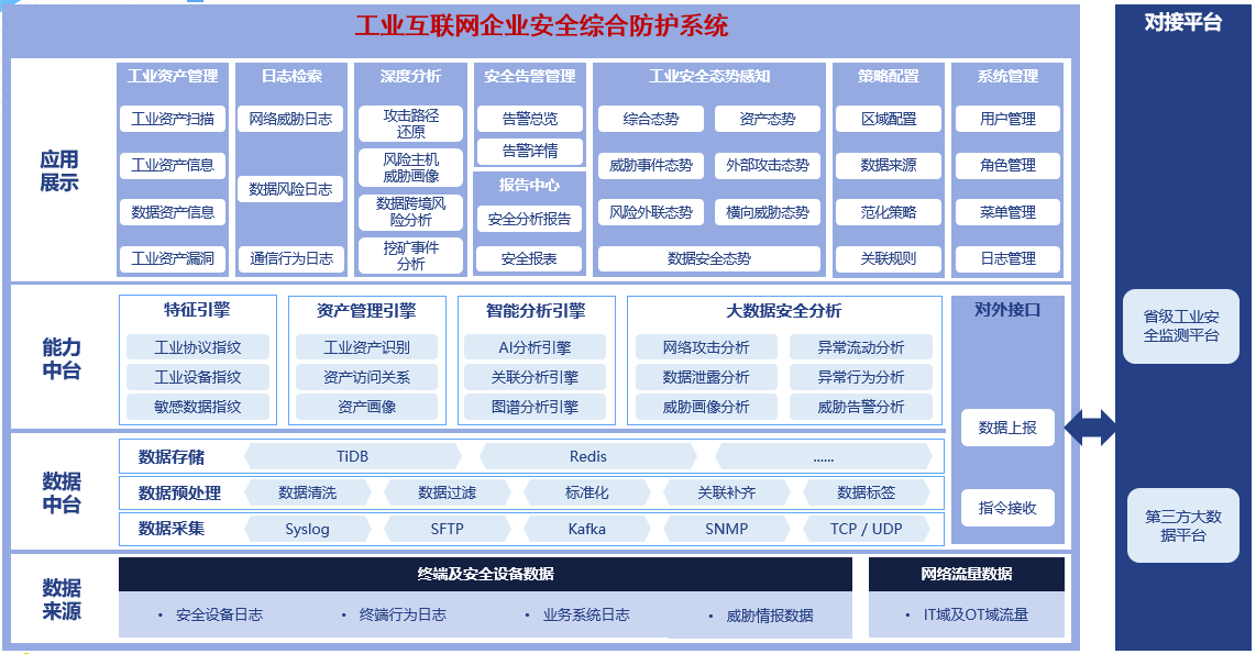 本次方案實用于工業企業的資產整體測繪、安全監測、威脅識別及溯源、態勢感知呈現及省企對接服務。