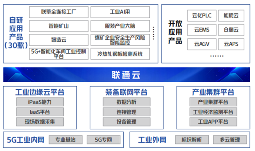 為進(jìn)一步推動“5G+工業(yè)互聯(lián)網(wǎng)”實現(xiàn)規(guī)模和價值的雙重躍升。中國聯(lián)通一直致力于打造“5G+工業(yè)互聯(lián)網(wǎng)”第一品牌,依托運(yùn)營商云網(wǎng)優(yōu)勢,歷經(jīng)多年實踐,整合生態(tài)資源,初步形成了“一朵云、兩張網(wǎng)、三平臺”的工業(yè)互聯(lián)網(wǎng)產(chǎn)品能力體系打造了30款自研應(yīng)用產(chǎn)品,形成完整的端到端產(chǎn)品體系。目前已經(jīng)深入裝備制造、服裝、礦山、汽車、鋼鐵、計算機(jī)電子、家電、石油化工、電力熱力、建材、港口等11大行業(yè),與合作伙伴攜手加速傳統(tǒng)產(chǎn)業(yè)向數(shù)字化、網(wǎng)絡(luò)化、智能化方向轉(zhuǎn)型升級。