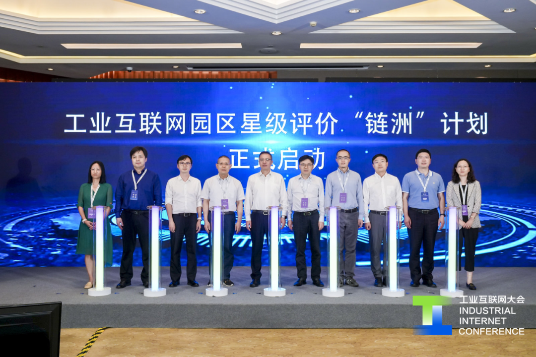 2023年6月14日,在2023工業互聯網大會——工業互聯網“百城千園行”高端論壇上,在工業和信息化部信息通信管理局一級巡視員王鵬,中國信息通信研究院黨委書記、副院長宋靈恩,江蘇省工業和信息化廳副廳長池宇,江蘇省通信管理局副局長耿力揚見證下,工業互聯網產業聯盟總體組主席李海花、需求組主席鄭治、網絡組主席張恒升、標識組主席劉陽、平臺組主席劉默、安全組主席陶耀東、政策組主席肖榮美共同啟動了工業互聯網園區星級評價“鏈洲”計劃。