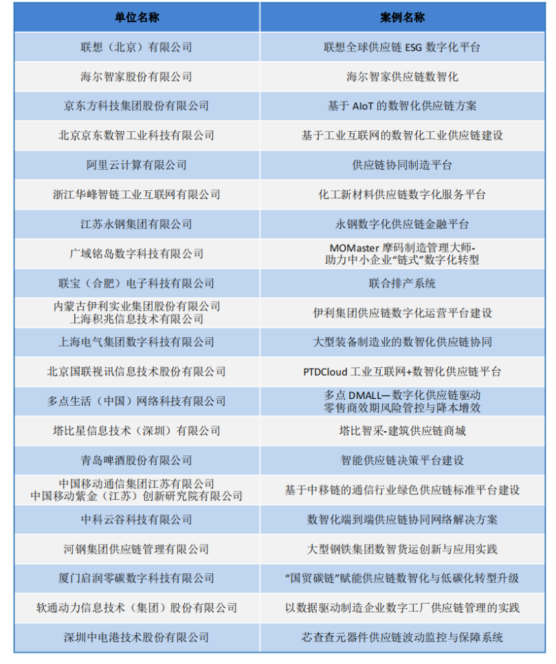 2023年數(shù)智化供應鏈案例名單