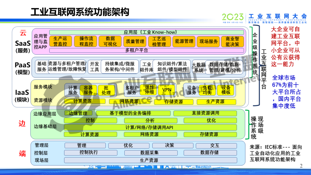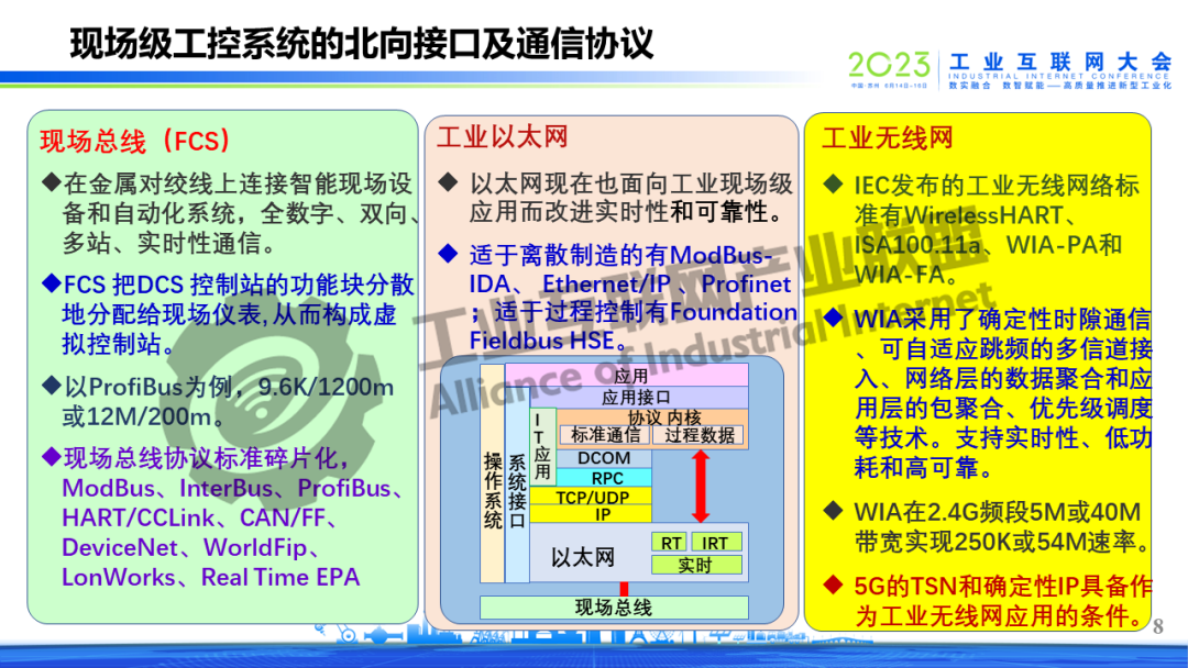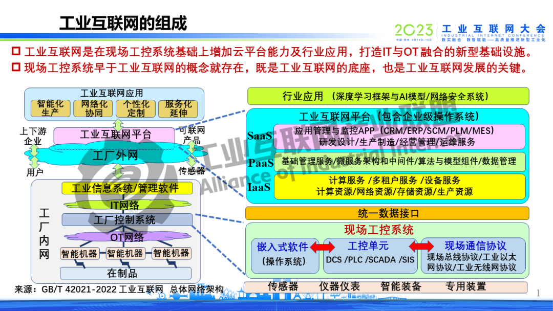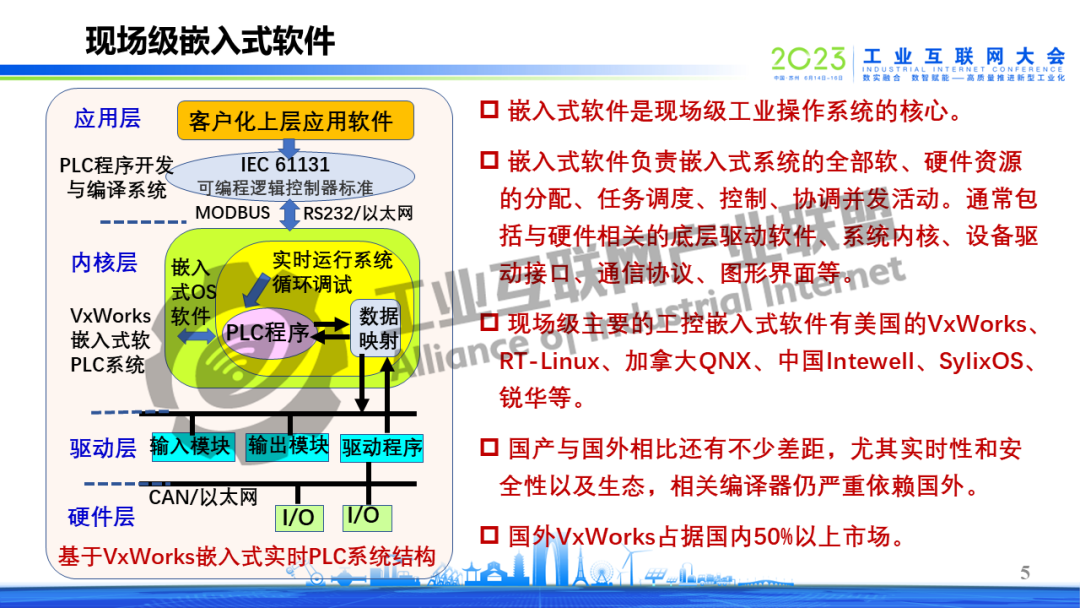 6月16日上午,在2023工業互聯網大會開幕式上,中國工程院院士鄔賀銓以《夯實工業互聯網的底座》為題作演講,指出工業互聯網個性化主要表現在現場級,重點與難點在現場級工控系統。政府引導垂直行業龍頭牽頭開發現場級工控系統的統一標準,當前可從各類現場級工控系統標準的最大公約數入手開發并推薦兼容標準,明確新增市場采用統一標準。抓工業CPU開發,以5G工業模組為抓手,推動軟硬結合、IT/OT的融合,建立新型現場級工控系統生態。