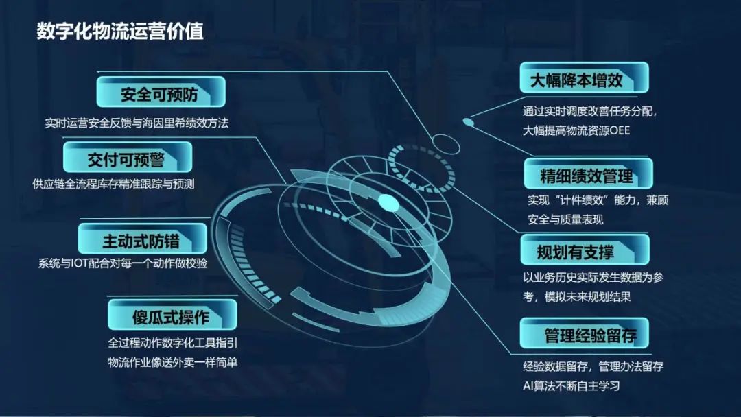 搭建數據采集、傳輸、分析、深度學習和成長的通道和平臺:在底層配備各種物聯網硬件設備,賦能于現場運營資源,包括人、車、物、場等,整體實現任務感知、作業感知、揀選防錯、實時定位等功能;邊緣層搭建物聯網管理平臺,向下采集物聯網硬件設備運行數據向上傳遞,同時接收上層任務數據向下派發;業務系統層,整體運營過程將由業務訂單、業務流程驅動,業務系統基于生產計劃及客戶訂單,轉化為運營任務數據,并將業務數據傳遞至數智化運營平臺;在頂層搭建數智化運營平臺,通過對接業務系統獲取任務數據,利用自身運營優化算法計算完成任務的最優資源,實現智能任務調度,從而保證現場運營資源利用率最大化。