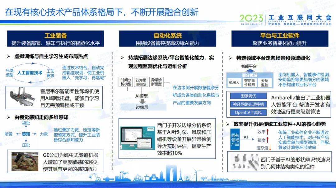 《工業(yè)智能白皮書》從體系內(nèi)涵、技術(shù)、應(yīng)用和產(chǎn)業(yè)等維度進(jìn)行了闡述。體系方面,對(duì)目前工業(yè)智能面臨的問題進(jìn)行了總結(jié),提出了涵蓋三個(gè)視角的工業(yè)智能發(fā)展體系。技術(shù)方面,梳理了工業(yè)智能技術(shù)發(fā)展現(xiàn)狀,圍繞核心賦能技術(shù)創(chuàng)新與工程化突破兩個(gè)技術(shù)發(fā)展路徑進(jìn)行深入分析。產(chǎn)業(yè)方面,梳理工業(yè)智能產(chǎn)業(yè)現(xiàn)狀與發(fā)展趨勢(shì),對(duì)支撐工業(yè)賦能的核心技術(shù)產(chǎn)品進(jìn)行分析。應(yīng)用方面,總結(jié)工業(yè)智能應(yīng)用發(fā)展總體歷程,從應(yīng)用場景、國內(nèi)外應(yīng)用與行業(yè)應(yīng)用三個(gè)角度開展細(xì)化分析。