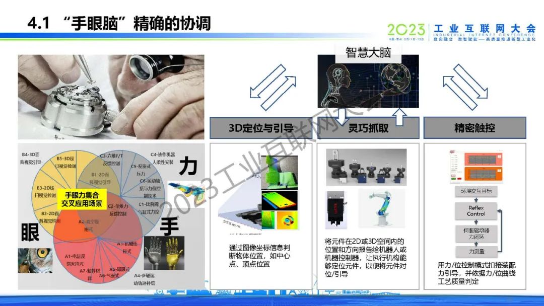 林杰分享智能制造產(chǎn)業(yè)趨勢(shì)和特征,指出了傳統(tǒng)制造型企業(yè)“智改數(shù)轉(zhuǎn)”的痛點(diǎn),提出要為制造配上“慧眼”。他表示人工智能的飛速發(fā)展,為工業(yè)發(fā)展插上翅膀,通過(guò)“手眼腦”精確的協(xié)調(diào)和執(zhí)行來(lái)解決問(wèn)題。