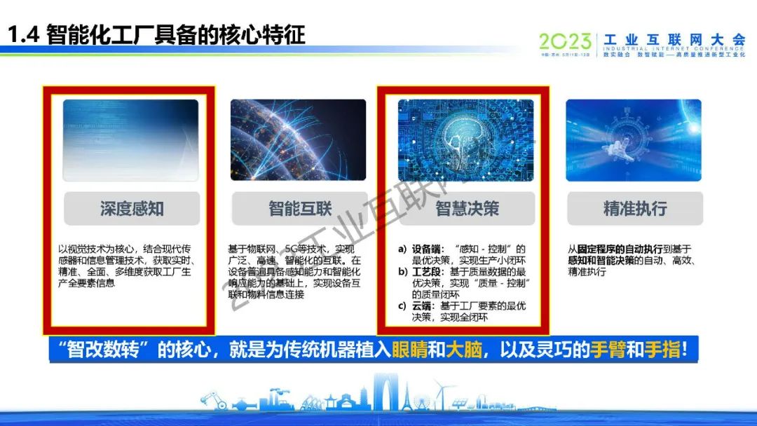 未來(lái)智能化工廠具備以下四個(gè)特征:深度感知,智能互聯(lián),智慧決策和精準(zhǔn)執(zhí)行。“智改數(shù)轉(zhuǎn)”的核心,就是為傳統(tǒng)機(jī)器植入眼睛和大腦,以及靈巧的手臂和手指!