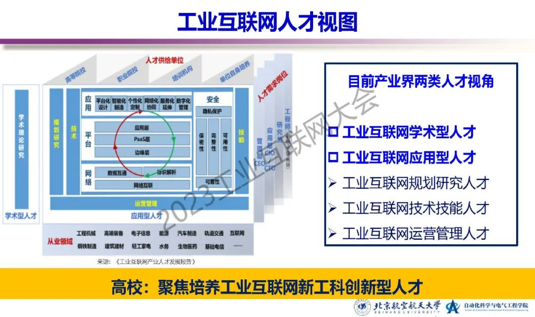 任磊表示,目前產業界有兩類人才視角:學術型人才和應用型人才。高校應聚焦培養工業互聯網新工科創新型人才,探索建設工業互聯網新工科課程體系,形成工業互聯網新型人才培養模式。