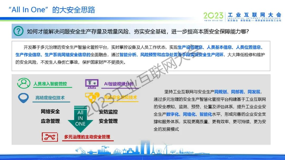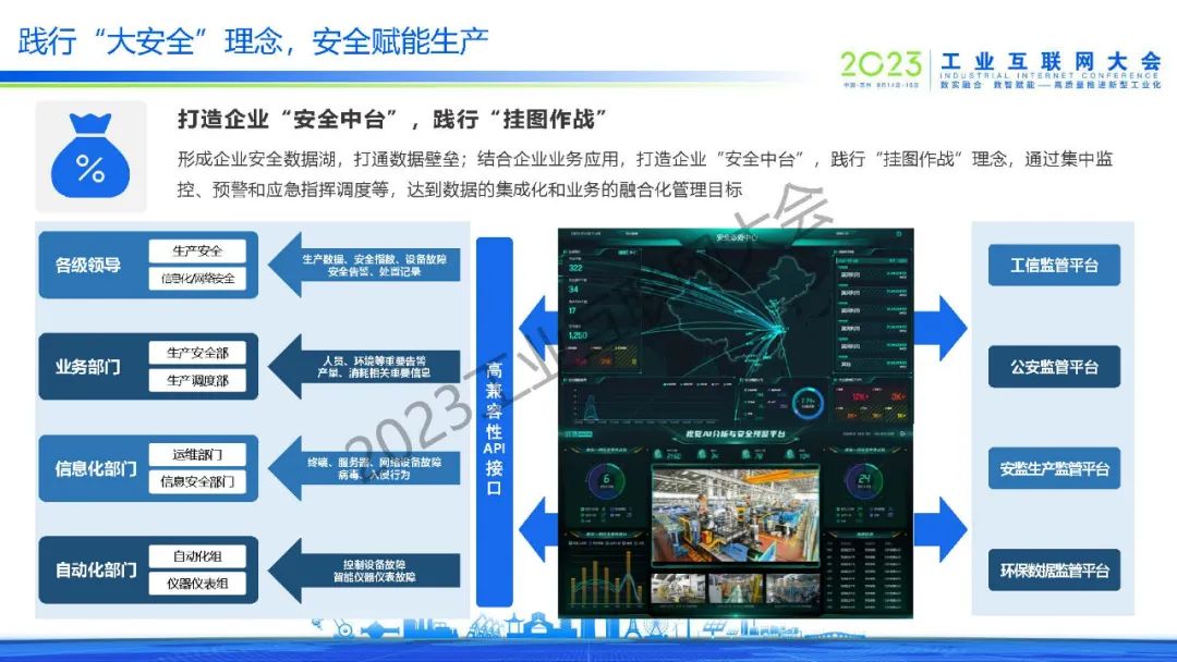 郭賓指出,安全意識不強、責任落實不力、安全投入不足、監管執法不到位的情況普遍存在,安全生產面臨的形勢依然嚴峻復雜。堅持工業互聯網與安全生產同規劃、同部署、同發展,通過多元治理的安全生產智慧化管控平臺構建基于工業互聯網的安全感知、監測、預警、處置及評估體系,提升工業企業安全生產數字化、網絡化、智能化水平,形成完善的企業安全支撐和服務體系,實現更高質量、更有效率、更可持續、更為安全的發展模式。