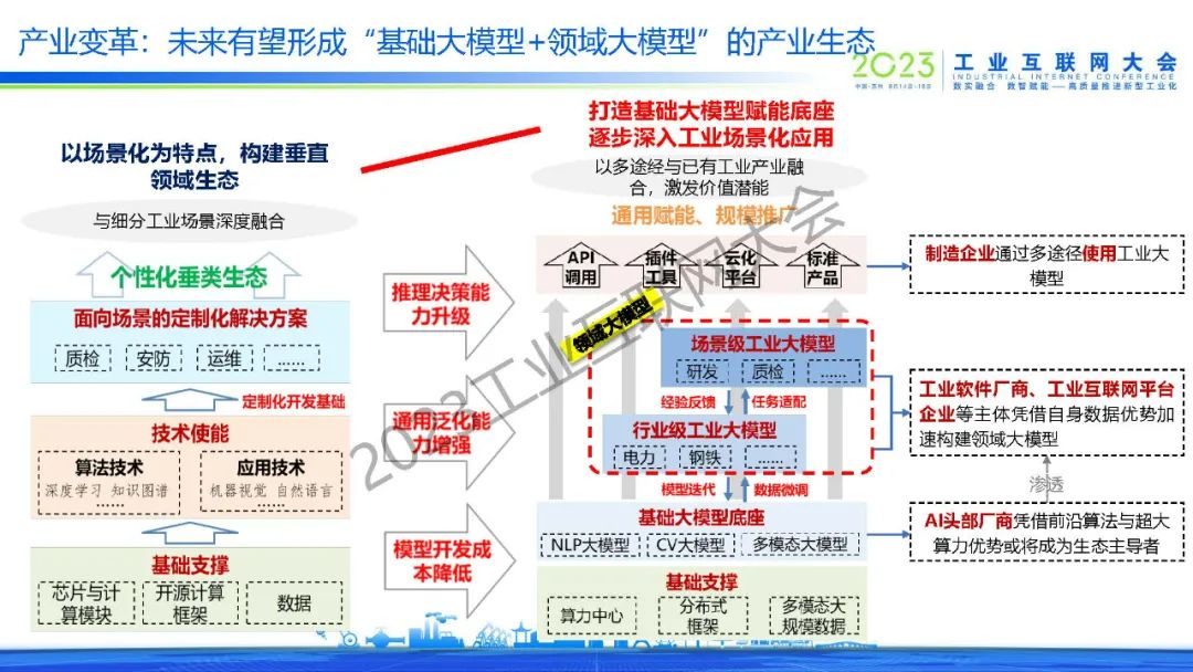 “未來,工業(yè)大模型與專用小模型將成為工業(yè)智能發(fā)展的兩條路線,在各自適配的工業(yè)場景下持續(xù)激發(fā)價值潛能。”