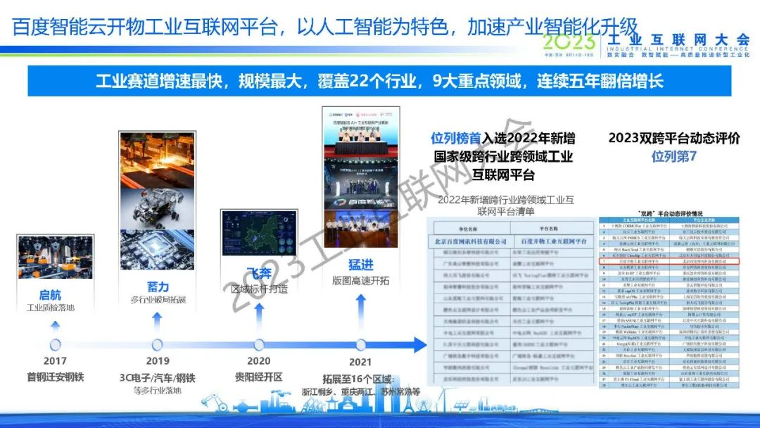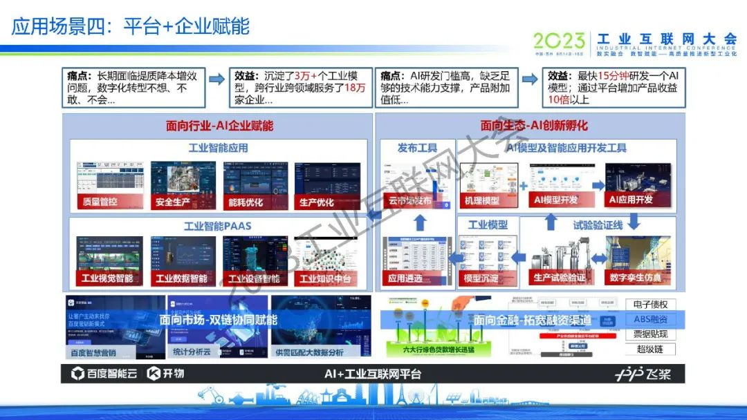 “百度智能云開物工業(yè)互聯(lián)網(wǎng)平臺,以人工智能為特色,加速產(chǎn)業(yè)智能化升級,助力園區(qū)高質(zhì)量發(fā)展。“