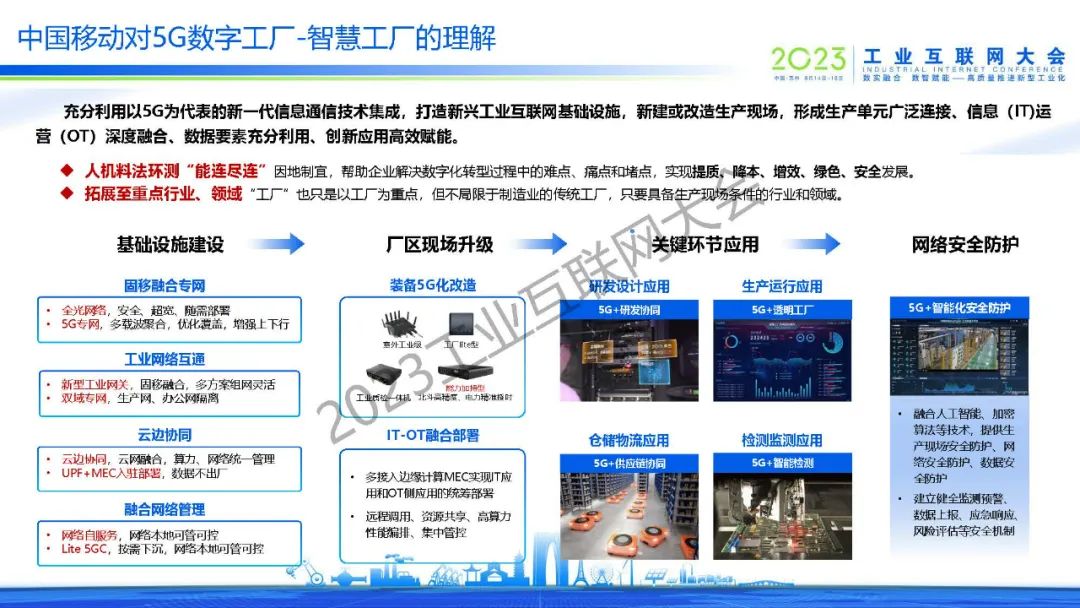 “智慧工廠是充分利用以5G為代表的新一代信息通信技術(shù)集成,打造新興工業(yè)互聯(lián)網(wǎng)基礎(chǔ)設(shè)施,新建或改造生產(chǎn)現(xiàn)場(chǎng),形成生產(chǎn)單元廣泛連接、信息(IT)運(yùn)營(yíng)(OT)深度融合、數(shù)據(jù)要素充分利用、創(chuàng)新應(yīng)用高效賦能。。”