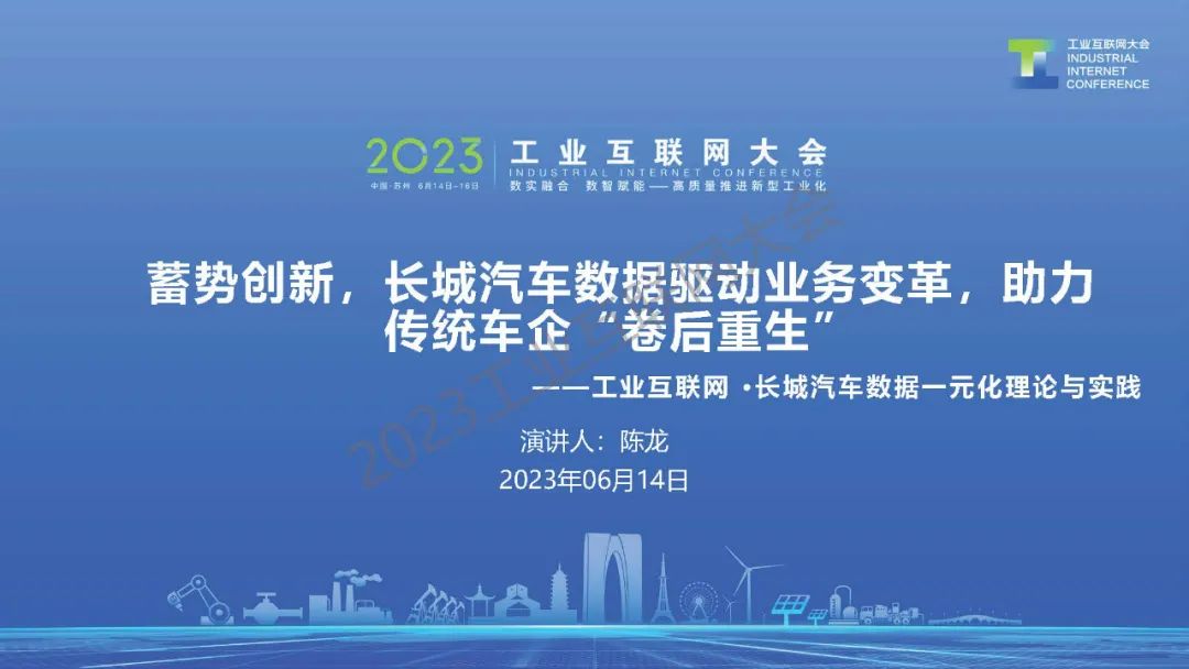 6月14日,在2023工業互聯網大會“工業互聯網助力企業數字化轉型高端論壇”上,長城汽車股份有限公司產業數智化中心副總經理陳龍發表了《工業互聯網·長城汽車數據一元化理論與實踐》的主題演講。