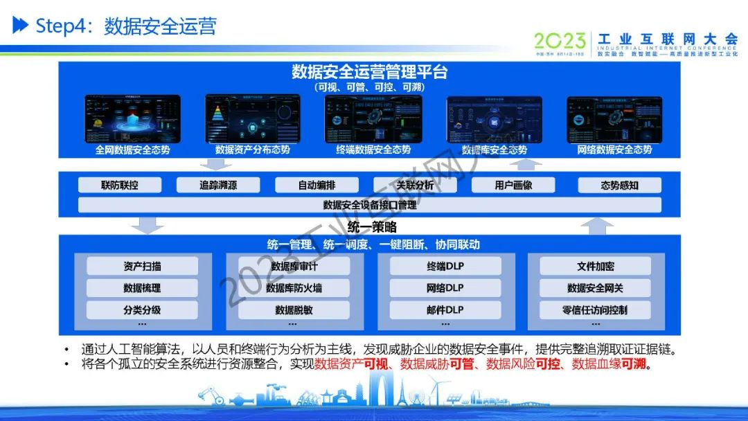 張?zhí)m蘭表示,工業(yè)互聯(lián)網(wǎng)數(shù)據(jù)安全是保障企業(yè)正常開展生產(chǎn)經(jīng)營(yíng)活動(dòng)的重要前提,經(jīng)濟(jì)社會(huì)穩(wěn)定發(fā)展的重要基石,也是總體國(guó)家安全戰(zhàn)略的重要組成。數(shù)據(jù)安全運(yùn)營(yíng)管理平臺(tái)通過安全智能識(shí)別、防護(hù)、檢測(cè)、運(yùn)營(yíng)做到可視、可管、可控和可溯。