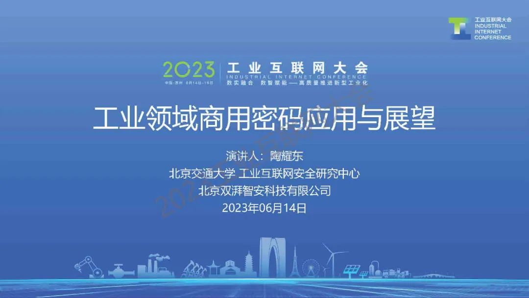 6月14日,在2023工業互聯網大會“工業互聯網密碼創新應用論壇”上,北京交通大學工業互聯網安全研究中心主任陶耀東發表了《工業領域商用密碼應用與展望》的主題演講。