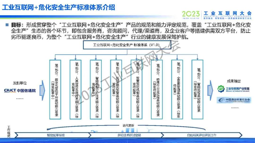 工業互聯網+危化安全生產標準體系的目標是形成貫穿整個“工業互聯網+危化安全生產”產品的規范和能力評定規范,覆蓋“工業互聯網+危化安全生產”生態的各個環節,即包含服務商,咨詢顧問,代理/渠道商,及企業客戶等搭建供需雙方平臺,防止劣幣驅逐良幣,為整個“工業互聯網+危化安全生產”行業的健康發展保駕護航。