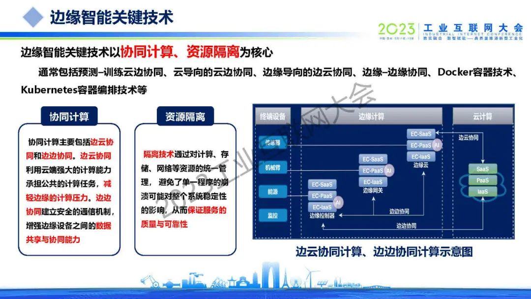 董勤喜介紹,工業(yè)數(shù)據(jù)融合需求旺盛,企業(yè)之間缺乏聯(lián)合與協(xié)同的可信環(huán)境,不能實(shí)現(xiàn)可信的數(shù)據(jù)融合,難以有效提高工業(yè)智能模型精度。邊緣智能關(guān)鍵技術(shù)以協(xié)同計(jì)算、資源隔離為核心,通常包括預(yù)測(cè)–訓(xùn)練云邊協(xié)同、云導(dǎo)向的云邊協(xié)同、邊緣導(dǎo)向的邊云協(xié)同、邊緣–邊緣協(xié)同、Docker容器技術(shù)、Kubernetes容器編排技術(shù)等。目前,數(shù)據(jù)安全防護(hù)、隱私保護(hù)以及數(shù)據(jù)價(jià)值聯(lián)合挖掘的市場(chǎng)需求巨大,需要對(duì)接可信工業(yè)數(shù)據(jù)空間,共建工業(yè)數(shù)據(jù)融合生態(tài),推廣應(yīng)用至更多場(chǎng)景和企業(yè)。