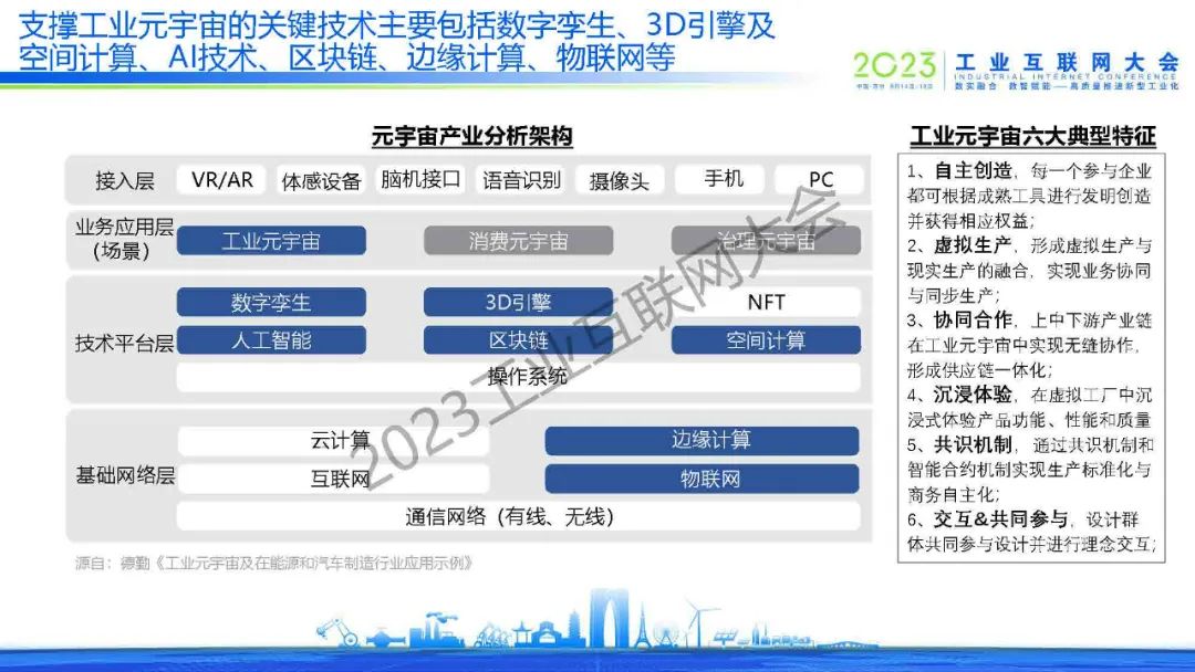 “工業元宇宙六大典型特征:自主創造、虛擬生產、協同合作、沉浸體驗、共識機制和交互&共同參與。”