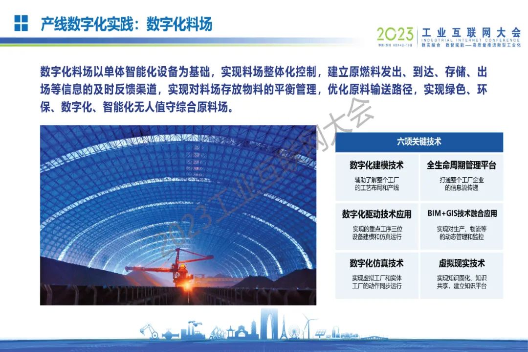“數字化料場以單體智能化設備為基礎,實現料場整體化控制,建立原燃料發出、到達、存儲、出場等信息的及時反饋渠道,實現對料場存放物料的平衡管理,優化原料輸送路徑,實現綠色、環保、數字化、智能化無人值守綜合原料場。”