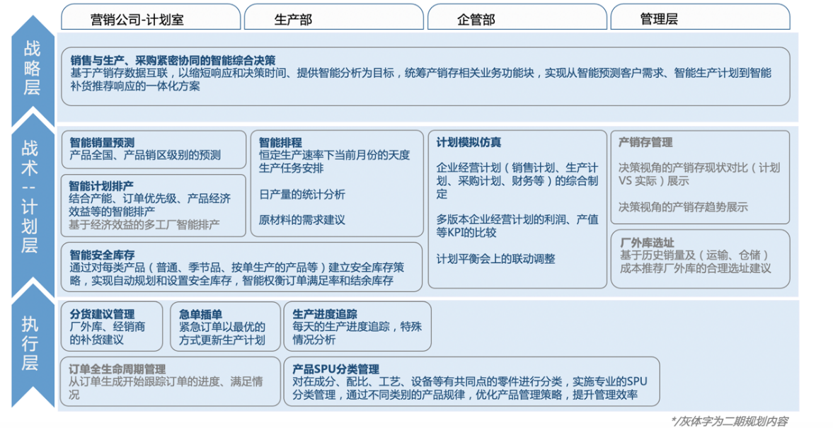 S&OP模塊(協同模擬模塊)的定制化程度稍高,存在大量人工經驗和現場處置能力,行業里存在大量的特殊業務場景和企業要求,難以直接以一條標準準繩加以判斷和定級。