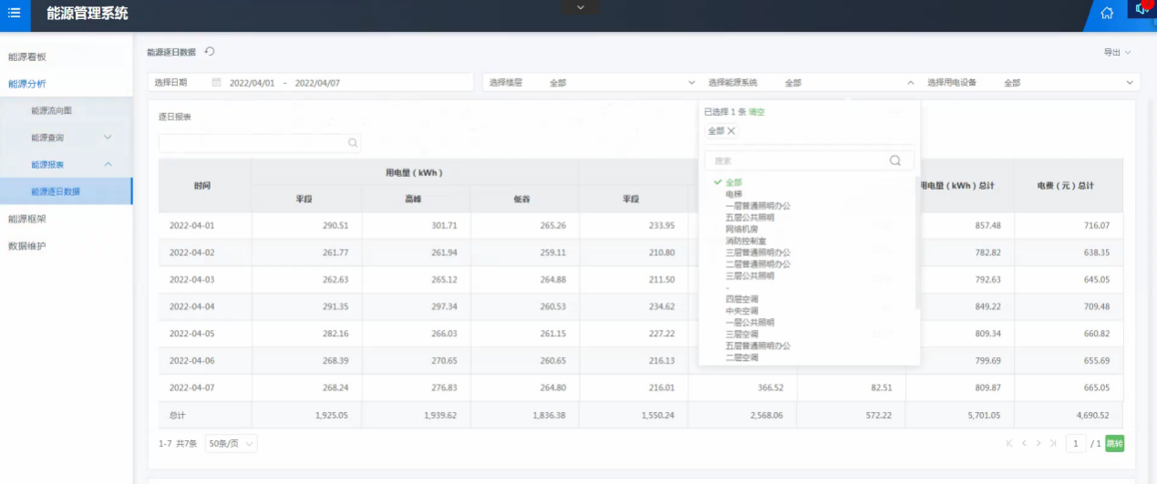 智慧能源管理系統(tǒng)以管理為中心,采集匯總系統(tǒng)的能耗數(shù)據(jù),上傳到能源管理中心進(jìn)行歸納、分析和整理,在整體功能上體現(xiàn)對建筑能源的來源、流向和使用各個環(huán)節(jié)的監(jiān)測、統(tǒng)計(jì)及分析。