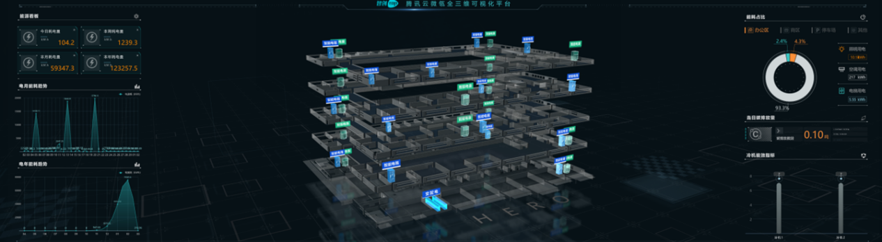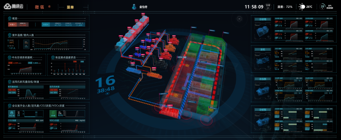 園區(qū)運(yùn)營期間,建筑能源的管理水平以及室內(nèi)環(huán)境的健康舒適是兩項(xiàng)重要指標(biāo)。本項(xiàng)目基于數(shù)字底座打造全域全要素互聯(lián)的數(shù)實(shí)融合新基建體系,通過建設(shè)智慧能源管理中心,聯(lián)動能耗計(jì)量系統(tǒng)、冷源群控系統(tǒng)、風(fēng)機(jī)盤管系統(tǒng)、通風(fēng)系統(tǒng)等,提供精細(xì)的能耗監(jiān)測、多維度的統(tǒng)計(jì)分析、智能的設(shè)備控制、可靠的報(bào)警管理等服務(wù),一方面利用物聯(lián)網(wǎng)技術(shù)對建筑能源消耗實(shí)行精細(xì)化計(jì)量,在精細(xì)化計(jì)量的基礎(chǔ)上,通過多維度分析,實(shí)時(shí)掌握能源使用動態(tài),從而為能源決策提供有效的數(shù)據(jù)支撐;另一方面利用大數(shù)據(jù)智能分析技術(shù),對建筑供冷供熱系統(tǒng)進(jìn)行優(yōu)化控制,不僅可以有效提高系統(tǒng)運(yùn)行效率,減少系統(tǒng)用能成本,還可以有效提升園區(qū) 內(nèi)部各建筑區(qū)域的環(huán)境空氣質(zhì)量。通過能源精細(xì)化管理、智能優(yōu)化控制、智能設(shè)備設(shè)施管理,實(shí)現(xiàn)“三理”聯(lián)動,助力“雙碳”目標(biāo)。