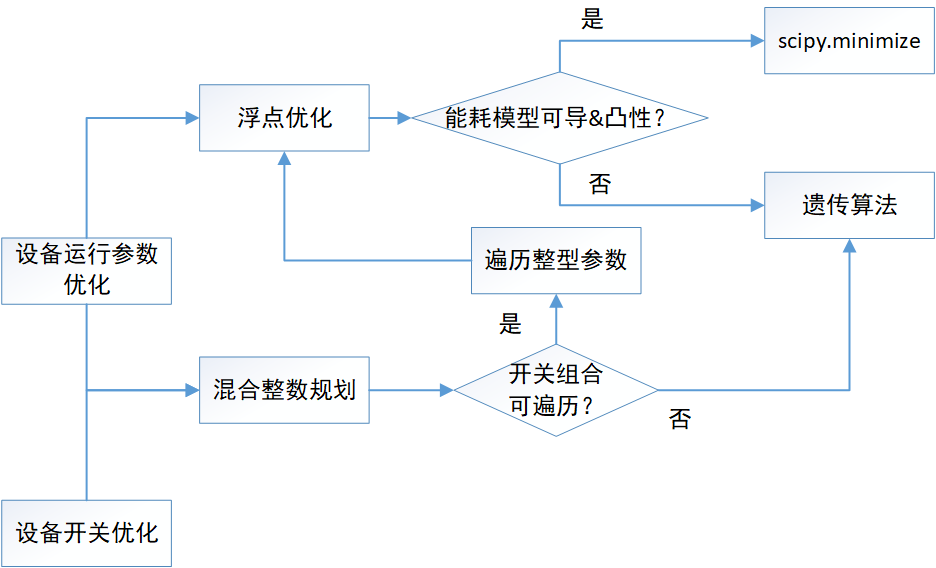 根據(jù)歷史數(shù)據(jù),采用回歸模型及時(shí)序預(yù)測模型,提取與能耗相關(guān)的特征,采用標(biāo)準(zhǔn)化的特征預(yù)處理,以能耗值作為目標(biāo)列,進(jìn)行模型擬合,進(jìn)而實(shí)時(shí)獲取數(shù)據(jù)并預(yù)處理,其目標(biāo)是為了在已知負(fù)載、環(huán)境變量(室外溫濕度等)的前提下,預(yù)知各設(shè)備處于不同開關(guān)狀態(tài)組合和不同的控制量設(shè)定值時(shí),系統(tǒng)將產(chǎn)生多少能耗,通過能耗預(yù)測值對接優(yōu)化算法;以降低能耗值為目標(biāo),在滿足約束條件的基礎(chǔ)上,通過調(diào)整各可控變量,使得目標(biāo)量降低,從而實(shí)現(xiàn)節(jié)能的目的。