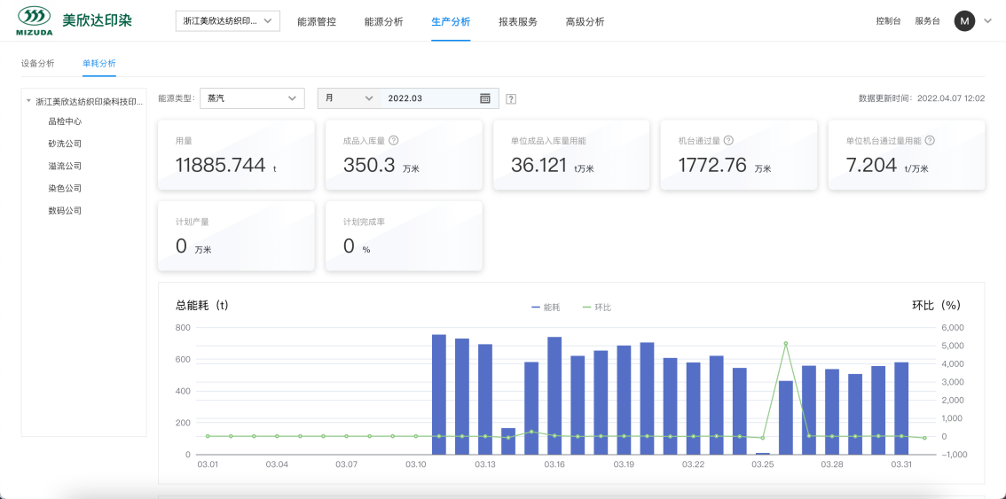 度能基礎能源管理平臺全功能上線:實現企業組織機構、角色權限、用戶配置等業務配置功能;實現 mizudany.com/login?bcia 的專屬域名訪問;實現能源類型、設備模型的數字化孿生;實現網關、儀表、印染設備的業務臺賬管理;實現靈活的能源數據核算編排。