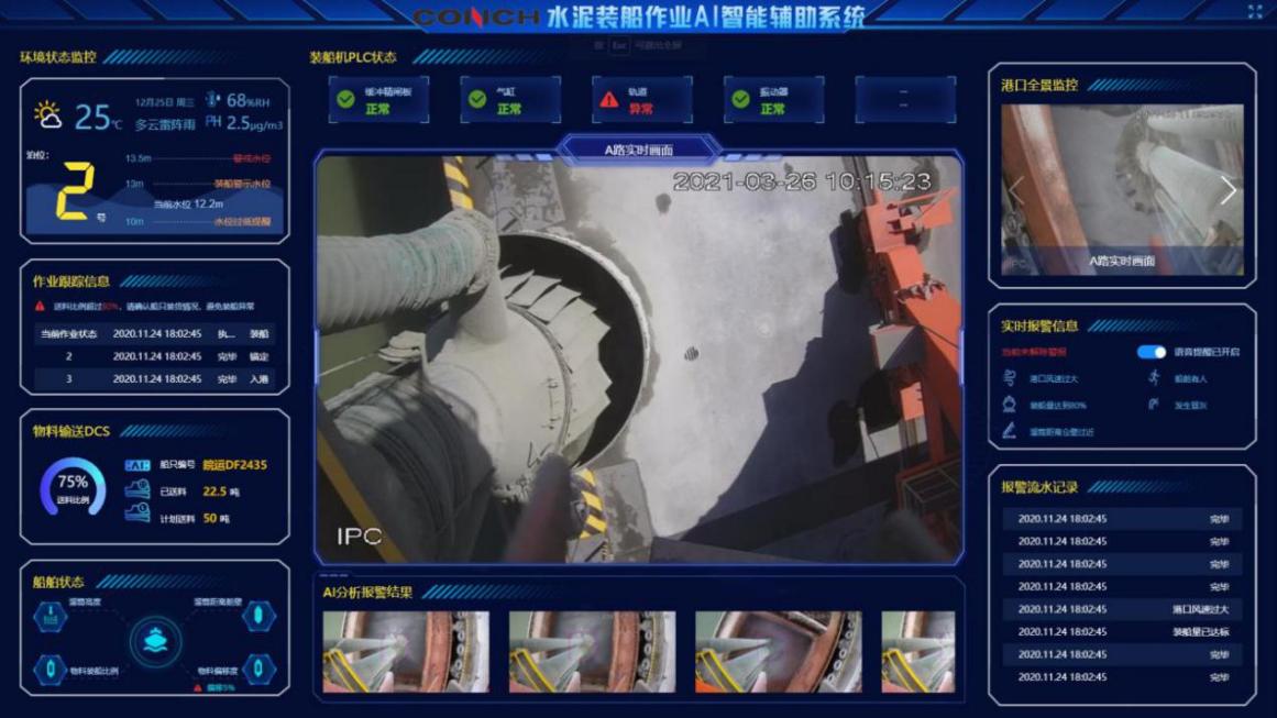 安徽海螺集團有限責任公司與中國電信合作,開展了“5G+AI+智慧裝船”項目建設(shè),實現(xiàn)了精準動態(tài)作業(yè)場景的應(yīng)用。通過搭建多視角相機,確定不同相機間同一物體的對應(yīng)關(guān)系,根據(jù)三角測量原理,實時監(jiān)測水泥船位置以及裝船機溜筒位置和姿態(tài),包括船舷位置、溜筒距船舷偏移比例、物料偏移度等。對數(shù)據(jù)進行AI分析,并通過5G網(wǎng)絡(luò)將結(jié)果與預警信息傳送到指揮調(diào)度中心,基于中心控制算法.發(fā)送指令到裝船機可編程邏輯控制器(PLC),實時控制裝船機作業(yè),避免因位置不當引起碰壁、冒灰和其他視野受限情況,實現(xiàn)對裝船作業(yè)的全流程監(jiān)控。項目實施后,生產(chǎn)效率提升70%,人員安全事故數(shù)降低到0。
