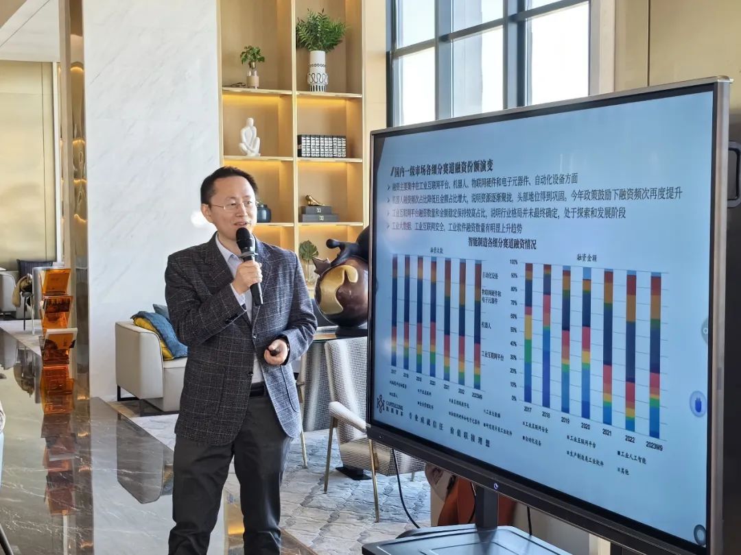 隨后,凱聯(lián)資本董事總經(jīng)理姬可鵬分享了最新的工業(yè)互聯(lián)網(wǎng)投融資趨勢(shì)。根據(jù)企名片庫數(shù)據(jù)分析,工業(yè)互聯(lián)網(wǎng)相關(guān)行業(yè)一級(jí)市場(上市前)的年融資規(guī)模從2017年的75億增長到>200億,2020-2022年持續(xù)保持在高位,融資主要集中在工業(yè)互聯(lián)網(wǎng)平臺(tái)、機(jī)器人、物聯(lián)網(wǎng)硬件和電子元器件、自動(dòng)化設(shè)備方面。姬總表示,凱聯(lián)資本未來的重點(diǎn)投資方向?qū)⒓性诖蛲ㄔO(shè)計(jì)和制造全流程的工業(yè)軟件和平臺(tái)、新一代的數(shù)字化智能制造裝備,以及打通上下游、實(shí)現(xiàn)高效協(xié)作的供應(yīng)鏈軟件和平臺(tái)。