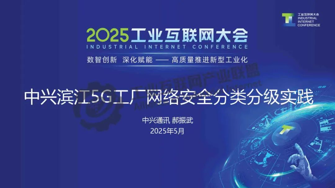 5月23日,在2025工業(yè)互聯(lián)網(wǎng)大會(huì)“新型工業(yè)化網(wǎng)絡(luò)與數(shù)據(jù)安全專題活動(dòng)”上,中興通訊股份有限公司網(wǎng)絡(luò)安全產(chǎn)品線總工程師郝振武發(fā)表了《中興濱江5G工廠網(wǎng)絡(luò)安全分類分級(jí)實(shí)踐》的主題演講。