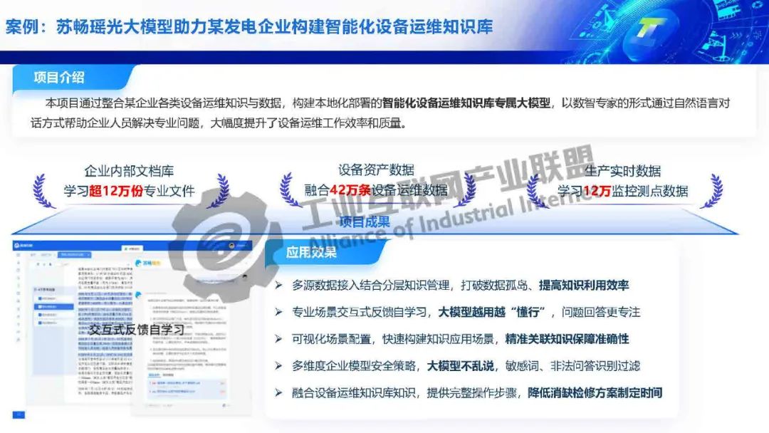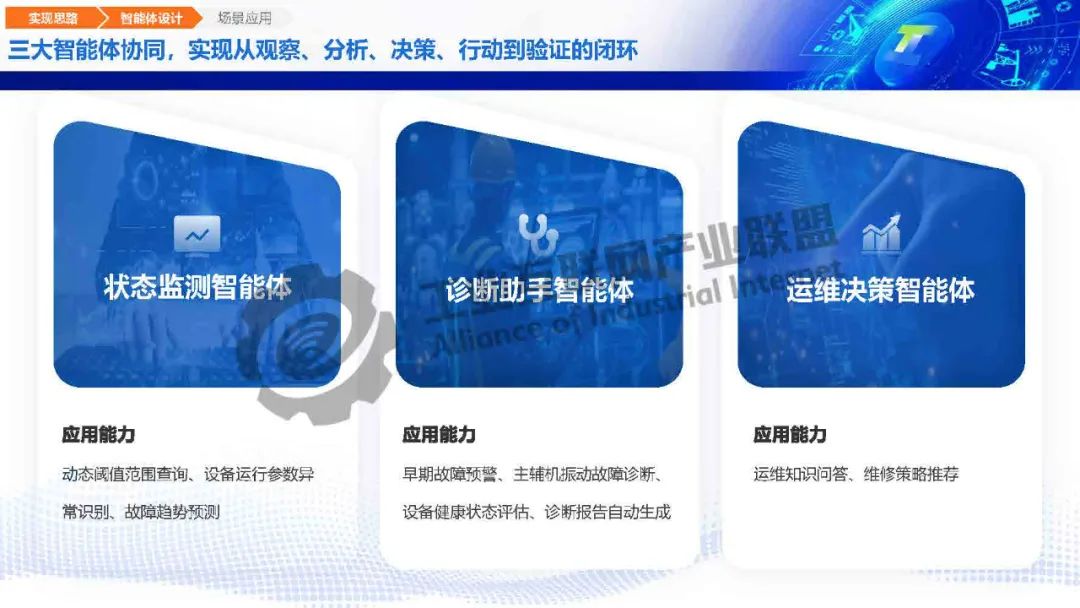 毛旭初介紹,工業(yè)大模型基于海量工業(yè)多模態(tài)數(shù)據(jù)訓(xùn)練,具備工業(yè)知識(shí)推理、生產(chǎn)風(fēng)險(xiǎn)識(shí)別、工藝仿真優(yōu)化等決策能力。瑤光工業(yè)大模型在小模型的基礎(chǔ)上加持大模型的生成、推理、調(diào)度能力,實(shí)現(xiàn)故障綜合判斷,三大智能體協(xié)同,實(shí)現(xiàn)從觀察、分析、決策、行動(dòng)到驗(yàn)證的閉環(huán)。