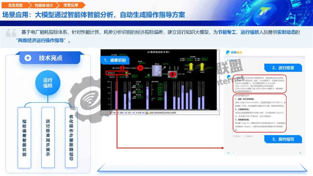 針對(duì)運(yùn)行調(diào)優(yōu)煤耗影響因子復(fù)雜、偏差分析難度大、運(yùn)行操作要求高等痛點(diǎn),瑤光工業(yè)大模型構(gòu)建機(jī)組運(yùn)行尋優(yōu)智能體、運(yùn)行問(wèn)答智能體、運(yùn)行培訓(xùn)智能體,重點(diǎn)打造機(jī)組性能智能評(píng)價(jià)、尋優(yōu)推理、報(bào)告自動(dòng)生成核心能力,用知識(shí)經(jīng)驗(yàn)?zāi)P蛢?yōu)化機(jī)組“性能評(píng)價(jià)、節(jié)能診斷、生產(chǎn)調(diào)度、運(yùn)行操作”關(guān)鍵生產(chǎn)流程,全面保障各機(jī)組運(yùn)行可靠性,提升經(jīng)濟(jì)運(yùn)行水平。