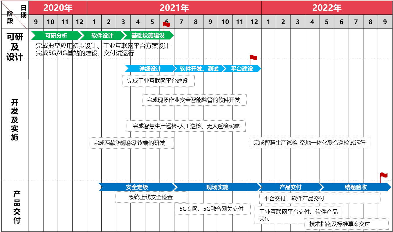 2021.12,計劃完成基于石化工業互聯網平臺開發的相應融合除無人機智能巡檢以外的應用場景,以及應用軟件的關鍵技術測試、算法驗證及學術驗證