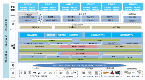為實現產業鏈、價值鏈資源合理配置,促進工業數據的匯聚、融合,解決產業鏈協同問題,保證家電行業生產過程優化、生產質量管理、故障預測性維護、產品售后服務等環節的協同。數據通過設備層網絡傳輸,與邊緣層應用服務器互聯,支撐工廠內的業務應用。邊緣側網絡為解決不同協議、端口的海量終端的數據采集,采用基于標準協議兼容的邊緣智能網關,在保障家電生產現場設備物理連接的同時,實現協議轉換和互聯互通。另一方面家電生產過程中SCADA、MES等系統對于網絡可靠性、穩定性要求較高,在靠近家電生產設備或數據源頭的網絡邊緣側進行數據預處理、存儲以及智能分析應用,提升操作響應靈敏度、消除網絡堵塞,并與云端數據分析形成協同。邊緣層的互聯互通打破數據孤島,支撐工廠生產數據、產品數據在系統間的傳輸和互操作。