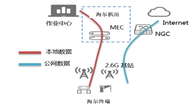 同時通過專線將MEC和海爾集團的私有云進行連接,滿足互聯網訪問需求。目前與海爾集團內網打通,可在青島各園區接入MEC設備。