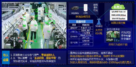 (5) 5G+8K+AI+VR實現生產現場全景呈現及人員行為識別