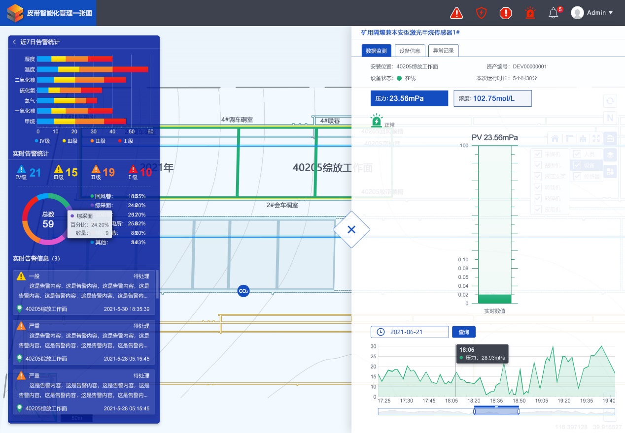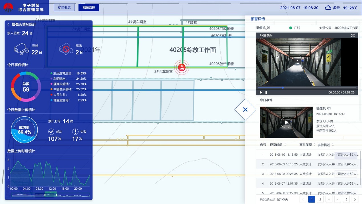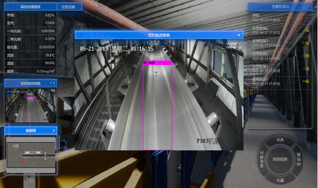 實現基于AI技術的皮帶空載、跑偏、大塊煤、堆煤、異物、人員違規穿越皮帶等監測功能,可以智能識別人員違規作業;實現主煤流運輸系統環境監測預警功能(煙霧、粉塵、明火等)。