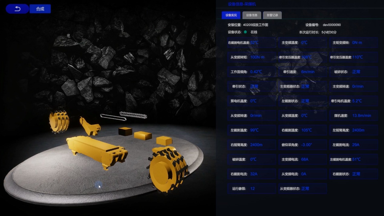 通過建設基于5G無線技術采集、數字孿生技術融合,形成物理體數據、虛擬體數據和能量信息間的動態交互,實時反映采掘工作面及設備的實時運行狀況、實時性能、環境參數、突發擾動等的動態過程數據,形成物理模型相關數據,數字模型的驅動因素、環境擾動、運行機制等行為模型相關評估、分析、預測等數據和模型,最終建立工作面生產、設備、安全知識和管理數據。