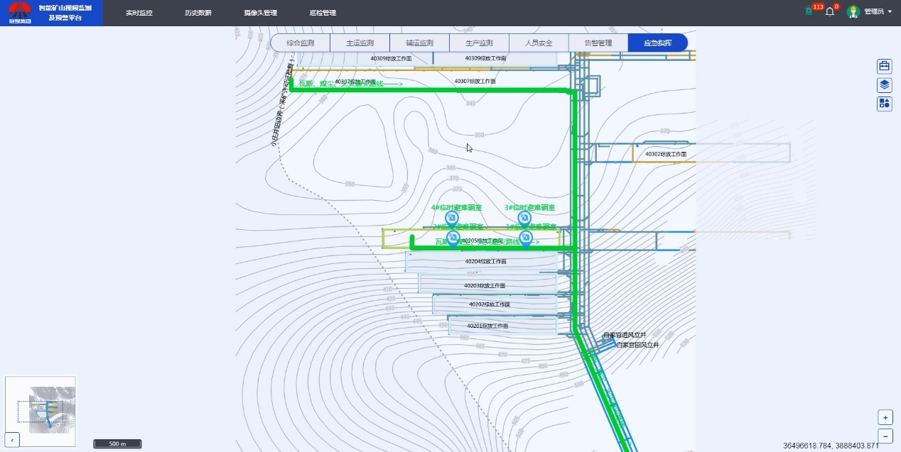 建設應急管理與應急救援系統,建立實景三維應急管理平臺,融合井下安全監測、調度通信、應急廣播、人員定位、視頻監控系統,實現生產事故應急預案管理、災害預警、信息發布、應急響應一體化、應急救援指揮可視化、應急資源共享,輔助實現礦井事故應急演練等功能。