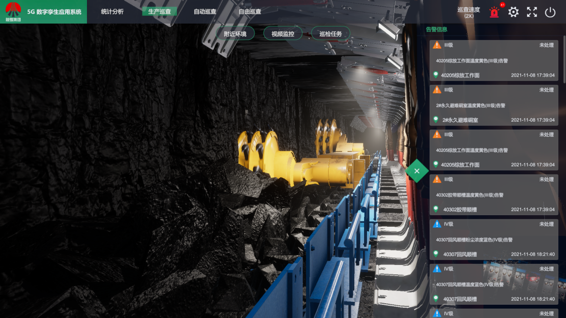 生產環境中的采掘系統、“三機”系統、主通風系統、供配電系統等的基于數字孿生的信息采集、圖像感知;