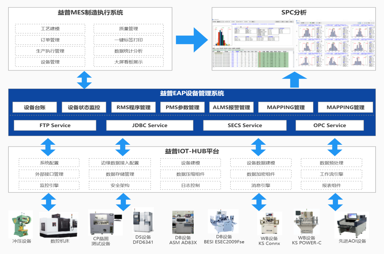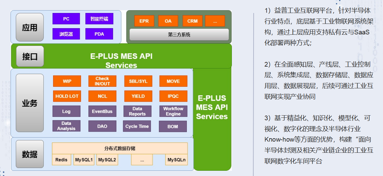 益普旗幟鮮明地從半導體封裝測試行業數字化車間服務出發,經過10年積淀,打通了很多關鍵技術:SECS/GEM 通信協議、LOE批次作業引擎、STDF數據分析等,并隨著近幾年半導體封測企業數量的迅速增加,也獲得了大量的應用場景進行產品迭代。
