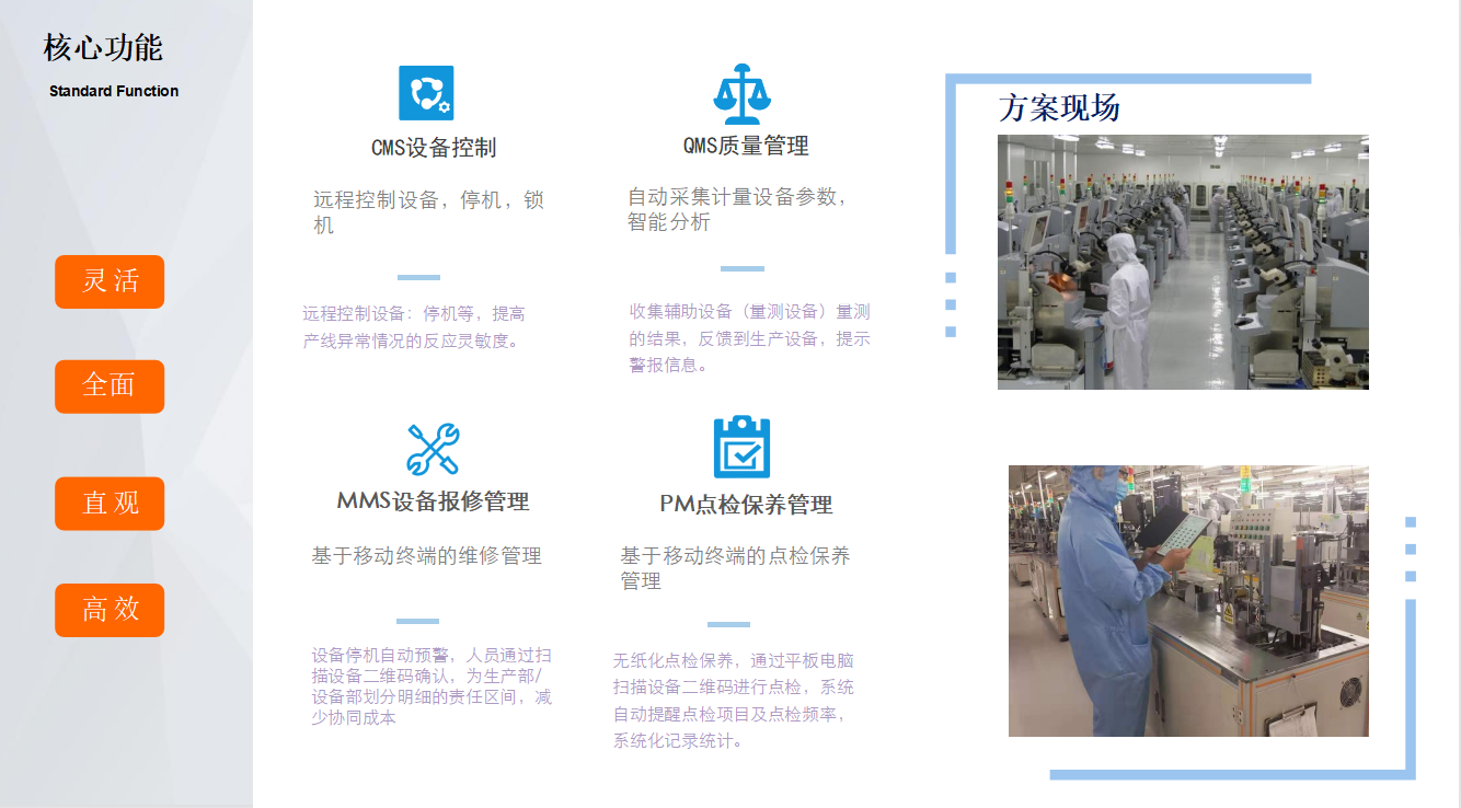 1)易實施:產品基于工業APP開發,功能解耦,分步上線,通用性較強易于部署實施;