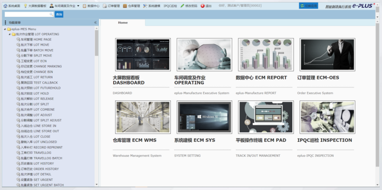 在執行層MES層和基于半導體設備互聯技術的PCS層,是本案例的重點內容,以人機互聯、人人互聯、機機互聯、機物互聯的理念,基于PCS采集層數據,實施工廠建模、生產執行、質量管理、設備管理、報表與看板等生產功能。工廠建模主要實現半導體產品建模、工藝路線、產品LINK、生產BOM、設備建模和標準工程設定;生產執行主要實現訂單下發、數據采集、效能分析、生產執行、過程監控、完工確認,與現場調度相協調;質量管理實現產品檔案、制程SPC、IPQC巡檢、物料追溯、不良分析、質量預警等;設備管理實現設備綜合效率OEE、設備控制和數據采集;報表與看板實現WIP在制品/OP產品/YLD良率/CT周期/CST成本、測試數據、標簽與條碼、追溯管理、數據導出和移動表表等。最后MES層與ERP的生產排程、生產投料、產品入庫、計件工資等相互聯動。