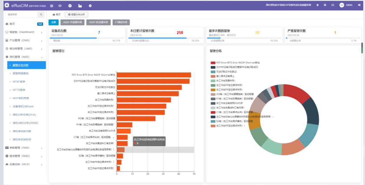 設備效率提升:通過設備數據分析,快速找到效率黑洞,異常原因,柏拉圖定律重點解決核心問題。提升設備稼動率、訂單周轉率等管理指標。