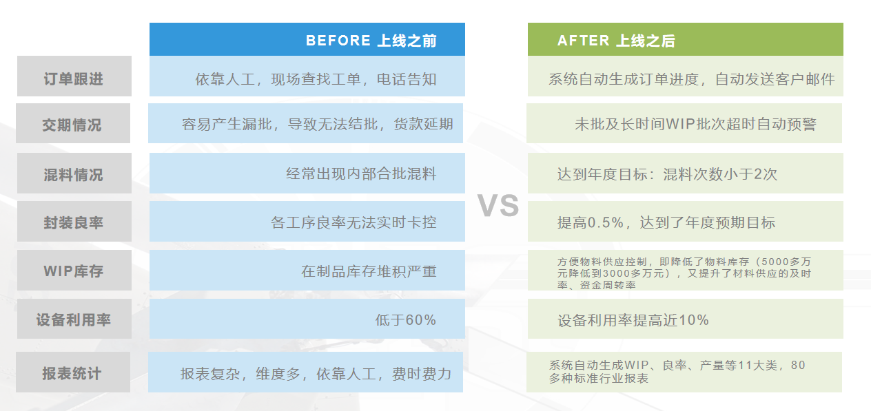 典型案例深圳盛元半導體,與益普建立合作關系后,全面開展半導體封測車間的數字化轉型工作,項目實施后,根據客戶反饋經濟收益如下: