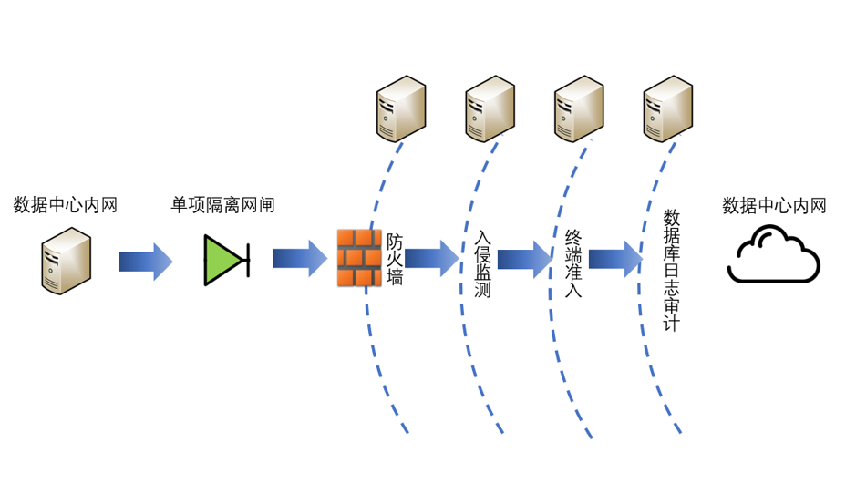 在燃機數據中心內部設立安全管控區,部署安全準入系統、入侵檢測系統、日志審計系統、數據庫審計系統等,實現對燃機數據中心內部設備的安全管理,安全準入系統驗證網絡使用者的合法身份,只有通過認證的用戶才可以使用燃機數據中心網絡,入侵檢測系統采用旁路部署,通過核心交換機將主干接口的數據流量鏡像到入侵檢測系統,用入侵檢測系統對網絡傳輸的數據進行安全檢查,對存在的安全威脅進行報警;日志審計系統及數據庫審計系統是對相應的設備的系統日志和操作日志進行詳細的記錄。