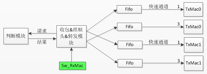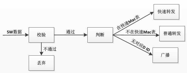 工作過(guò)程:SW模塊數(shù)據(jù)傳輸上來(lái)后首先會(huì)添加EOE私有幀頭,然后會(huì)對(duì)其進(jìn)行校驗(yàn),校驗(yàn)失敗,會(huì)丟棄此數(shù)據(jù),校驗(yàn)通過(guò)后,轉(zhuǎn)給判斷模塊,判斷模塊對(duì)私有幀頭部分進(jìn)行判斷,來(lái)決定數(shù)據(jù)的去向。